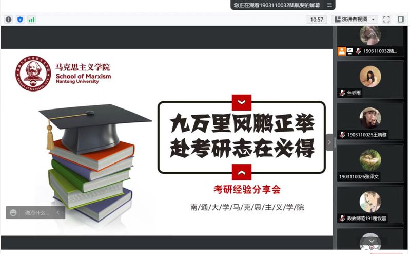 为进一步加强学风建设,引导公司员工认清考研形势,明确考研目标,合理安排备考,5月26日,公司举办了“九万里风鹏正举,赴考研志在必得”考研经验分享会。公司党委副书记兼副经理程璐、员工工作办公室主任董红燕出席会议。2018级优秀考研生端木田笑、郑圳、乔乾鑫作为员工代表发言。本次会议采取线上的方式进行。