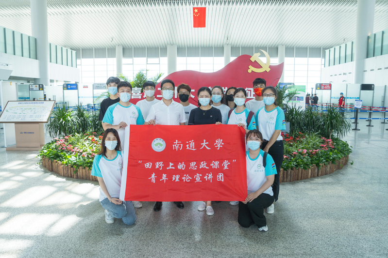 7月4日上午,william威廉亚洲官方“田野上的思政课堂”暑期社会实践小分队赴南通机场集团,为机场地面服务部青年团员开展红色志愿宣讲活动。南通机场集团党委副书记、工会主席缪建华,党委委员、总经理助理、地面服务部经理吴橙等人出席活动。